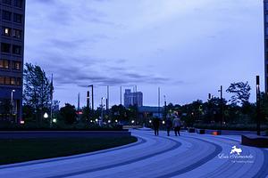 In "Urban Silhouettes," the essence of bustling city life comes to life. Three businessmen, silhouetted against the transitioning hues of a cold, blue evening sky, stride purposefully down a path flanked by downtown buildings. The fading sunlight gracefully paints the scene, hinting at the urban energy that thrives in this vibrant city. The focus on the figures and the subtle architectural backdrop portrays the poetry of movement and modernity against the canvas of the approaching nightfall.